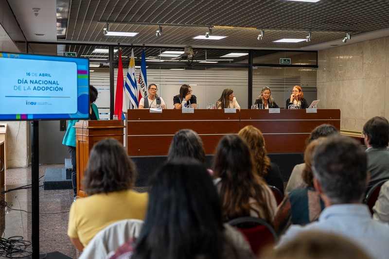 El evento incluyó un panel de autoridades. La presidenta del INAU, Dra. Claudia Romero, abrió las exposiciones, seguida por la Ministra del Tribunal de Apelaciones de Familia de 3.º turno, Dra. María Noel Tonarelli. También expuso Aurora Reolón, integrante de la Asociación de Padres Adoptantes del Uruguay (APAU).
